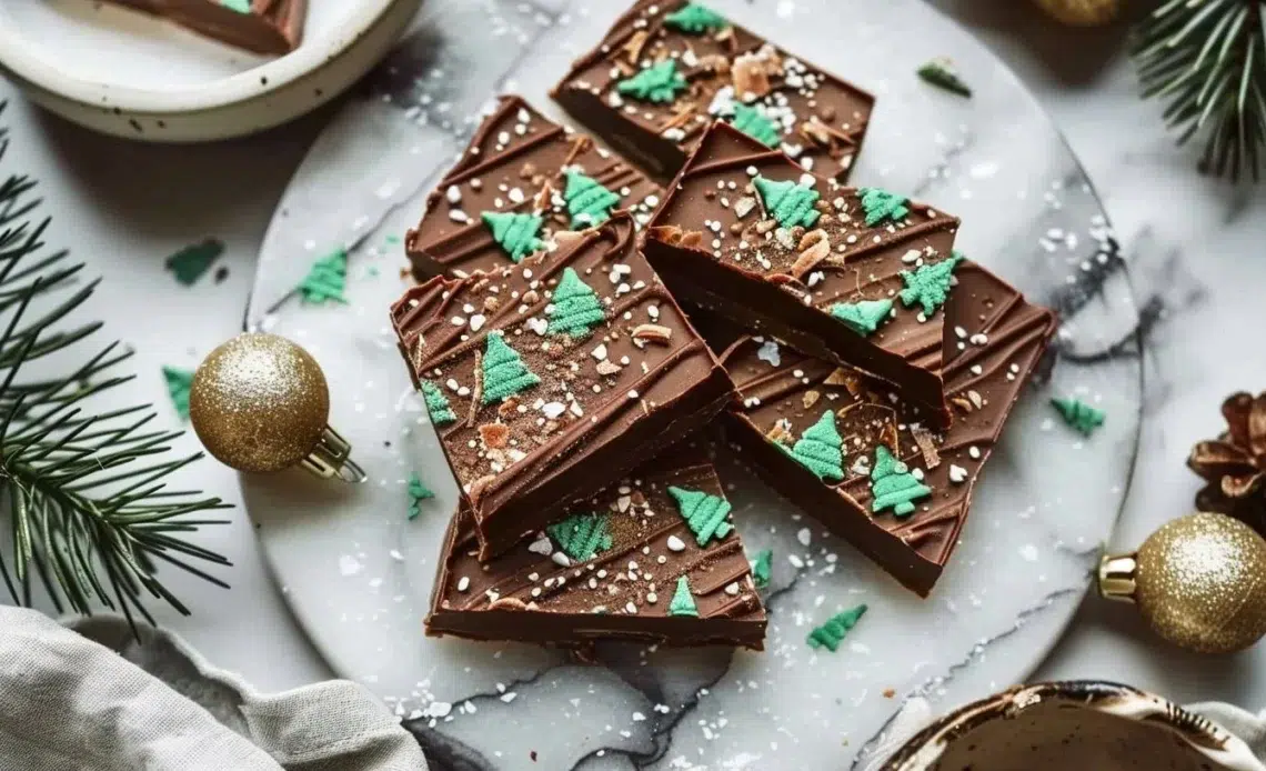 Après le temps de refroidissement, retirez le moule du réfrigérateur et démoulez délicatement les barres. Utilisez un couteau bien aiguisé pour couper en formes de sapin ou en carrés, selon vos préférences.