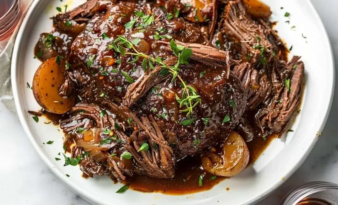 Préparer un rôti de bœuf mijoteuse offre plusieurs avantages. Non seulement il est économique, mais il est aussi très nutritif, surtout lorsque vous utilisez des coupes de viande comme l’épaule de bœuf ou le paleron. Ces morceaux contiennent du collagène, ce qui leur permet de devenir tendres et juteux à la cuisson lente. De plus, le mélange de sauce au balsamique et de miel ajoute une touche sucrée-salée qui ravira les papilles.