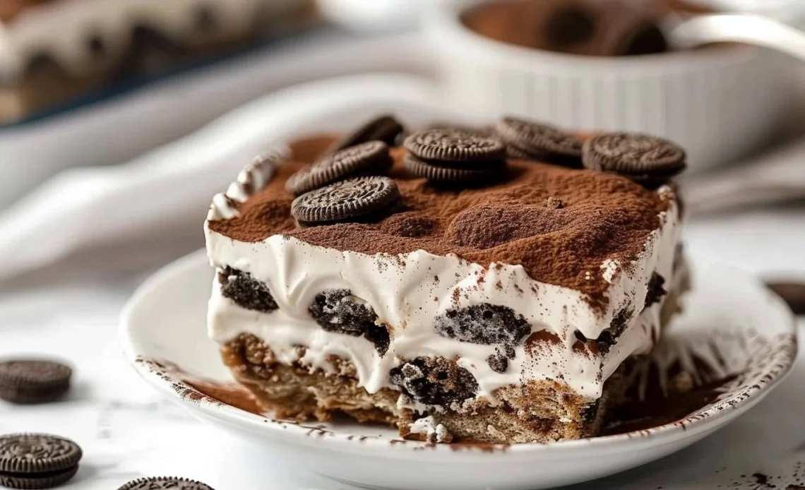 Une réinvention délicieuse du tiramisu classique, combinant le goût des biscuits Oreo avec une texture crémeuse.